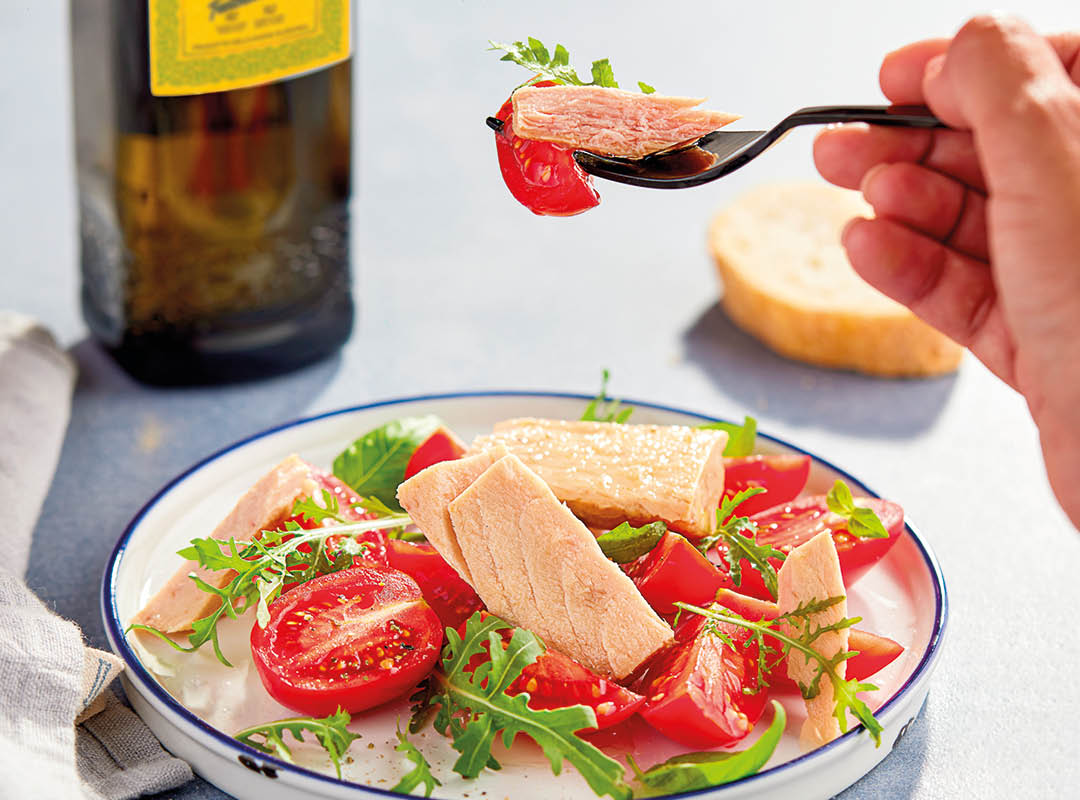 Thon (Thunnus alalunga ), huile d'olive, sel