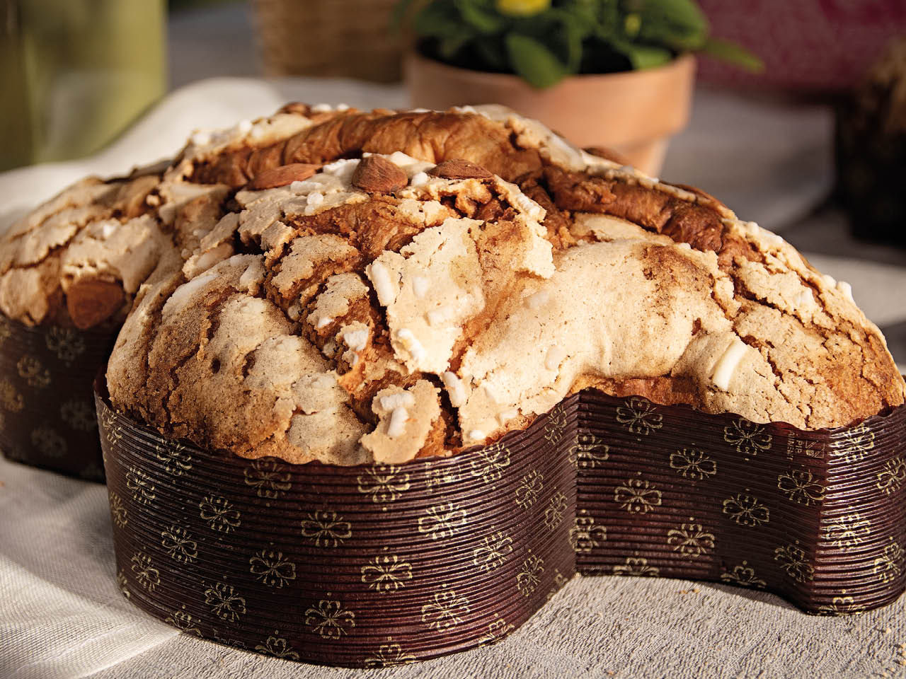 Notre Colombe de Pâques Classique, élaborée exclusivement avec du levain naturel et de l’Huile d’Olive Vierge Extra, est un gâteau de Pâques élégant et parfumé, enrichi d’écorces d’orange confite et sublimé par un glaçage croquant aux amandes en surface.