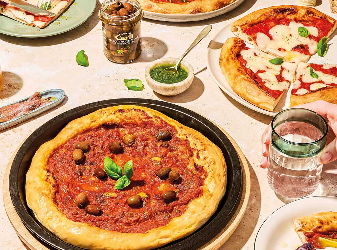 Rehaussez la saveur de votre pizza avec un filet de votre Huile d’Olive Vierge Extra préférée et, pour un accord parfait, nous vous recommandons de l’accompagner du vin approprié :
