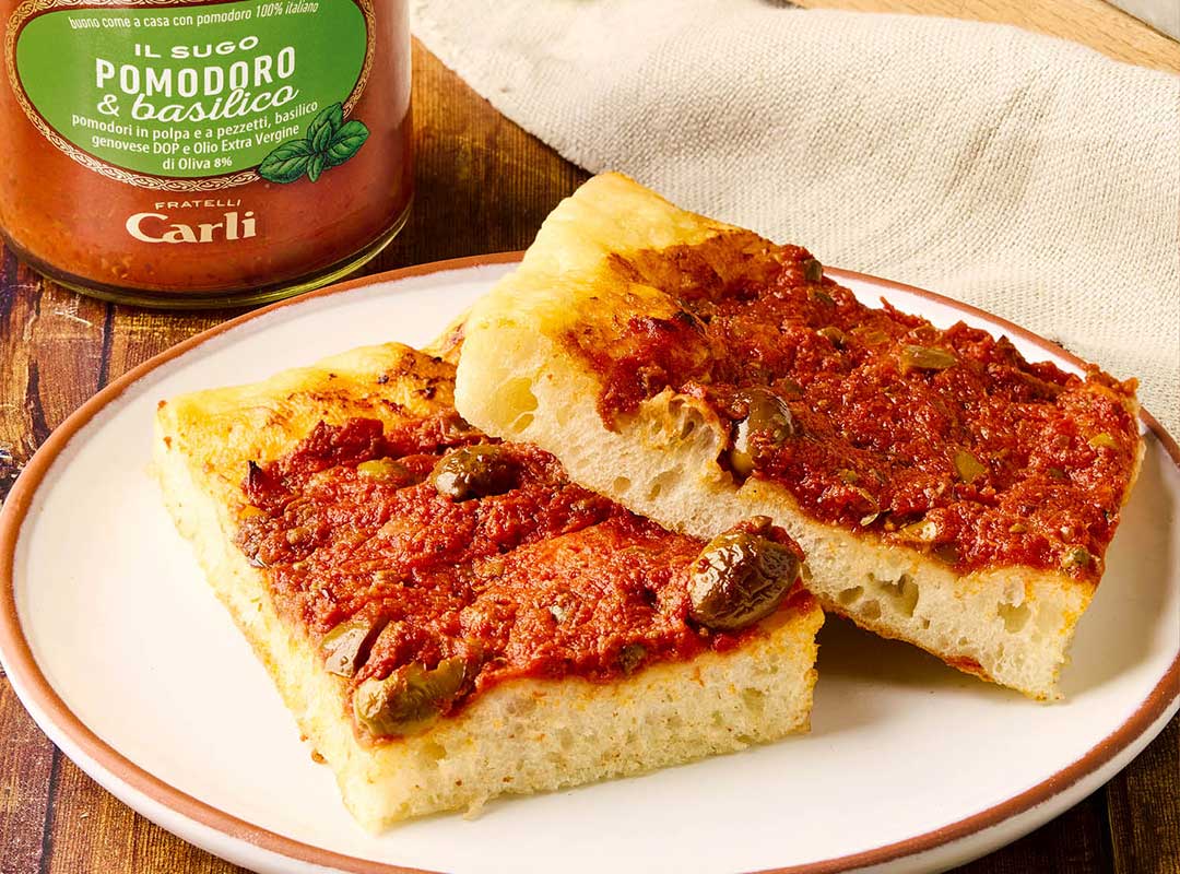 Pulpe de tomates 70%, double concentré de tomates, oignon, huile d’olive vierge extra, basilic Génois AOP 5%, sucre, sel, ail. Régulateur d’acidité : acide citrique. Antioxydant : acide ascorbique. Peut contenir des traces d’oeuf, poisson et céleris.