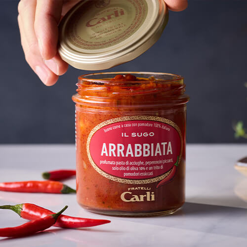 Des tomates 100 % italiennes, du basilic A.O.P. et de l’Huile d’Olive Vierge Extra , pour une sauce vraiment bonne. Une cuisson lente et beaucoup d’amour, pour un produit qui apporte la tradition italienne à table.